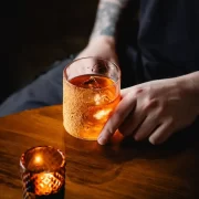 Pear Fizz Cocktail with warm olives and salted almonds